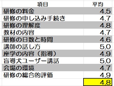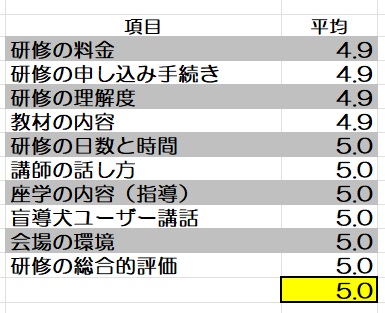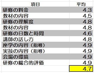 2017年応用課程(千葉開催①)…受講生20名、5点満点評価