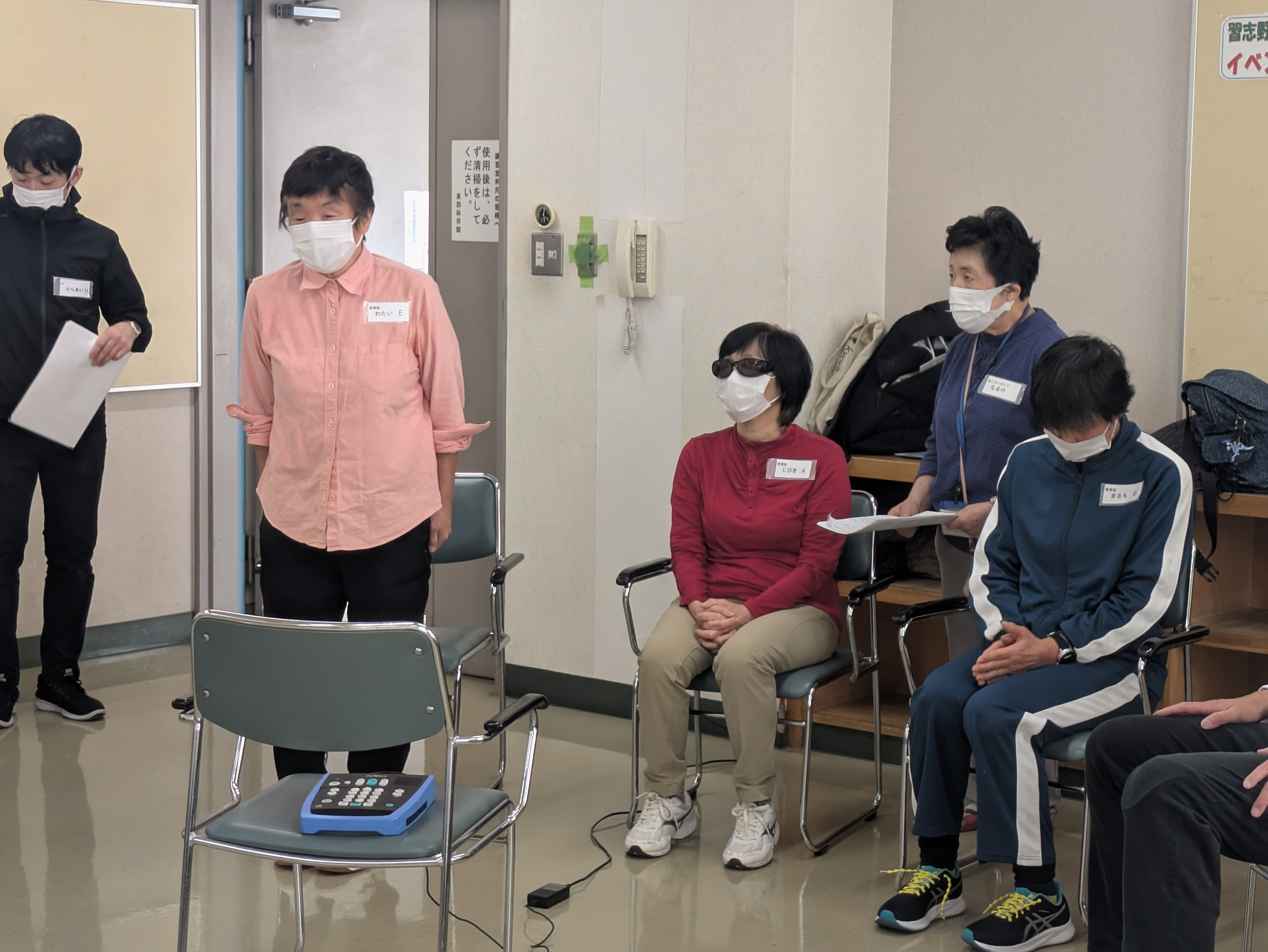 ☝参加者の自己紹介~「声出し」~から開始。視覚障がい者は声を出さないと、その場に誰がいるかわかりません。