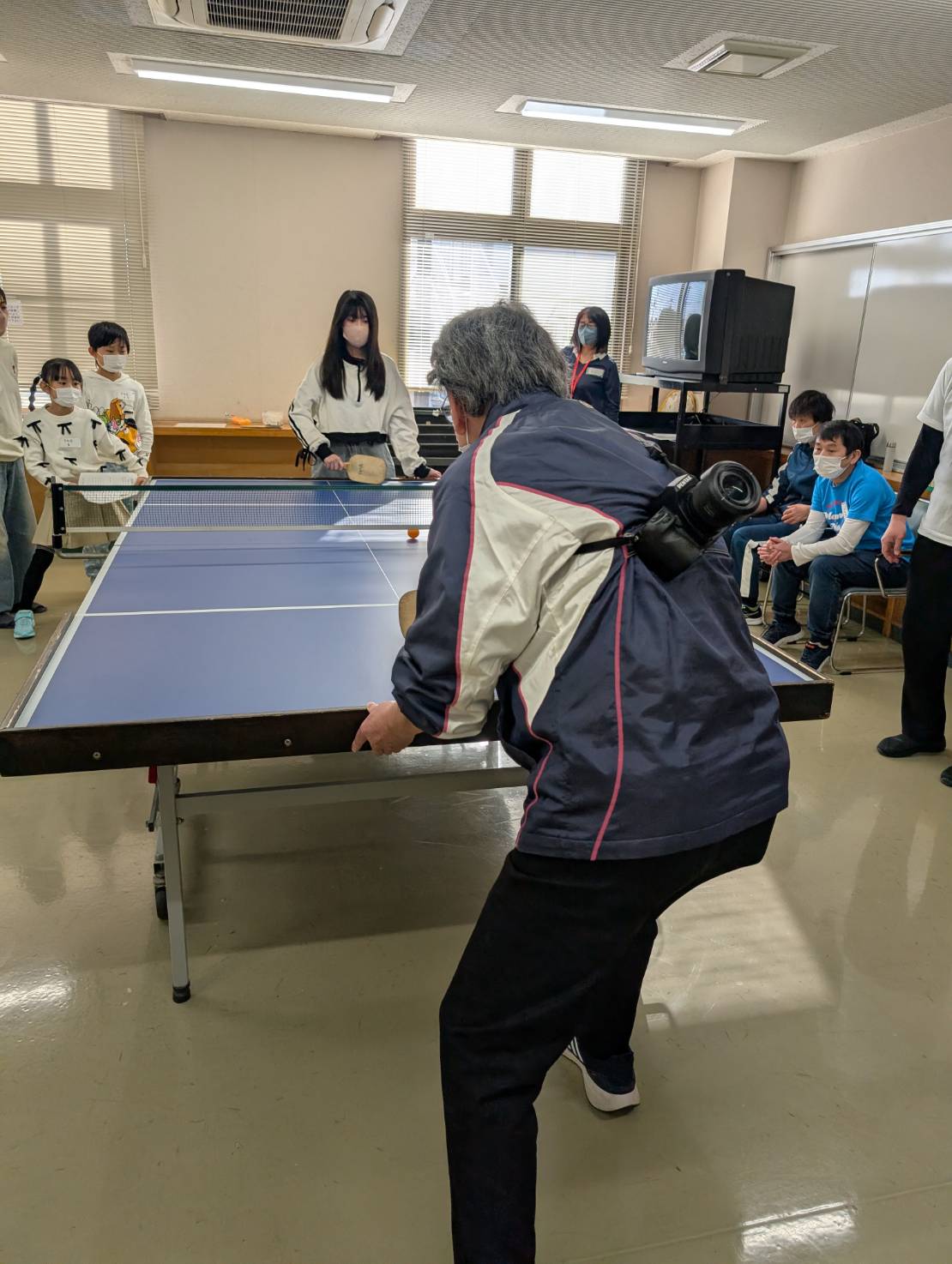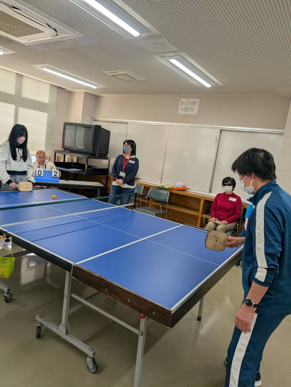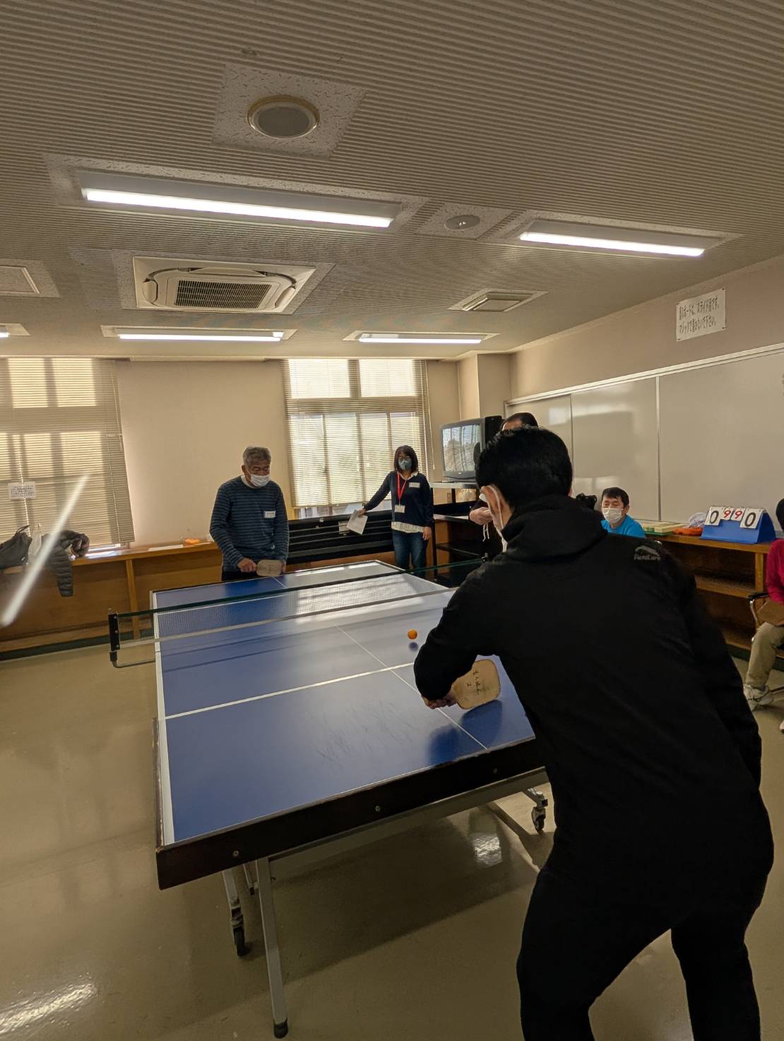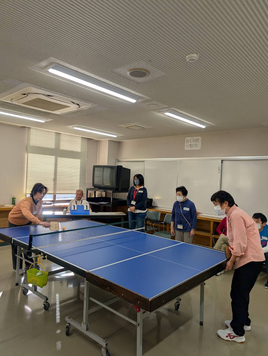 ☝後半戦は今年のSTT県大会に出る予定の字引さんvs嶋田さん(写真無😞)の「模範試合」を挟んで、で当事者(&市役所+障がい者スポーツ協会)vs体験参加者による「試合形式」(5点先取)で行いました。