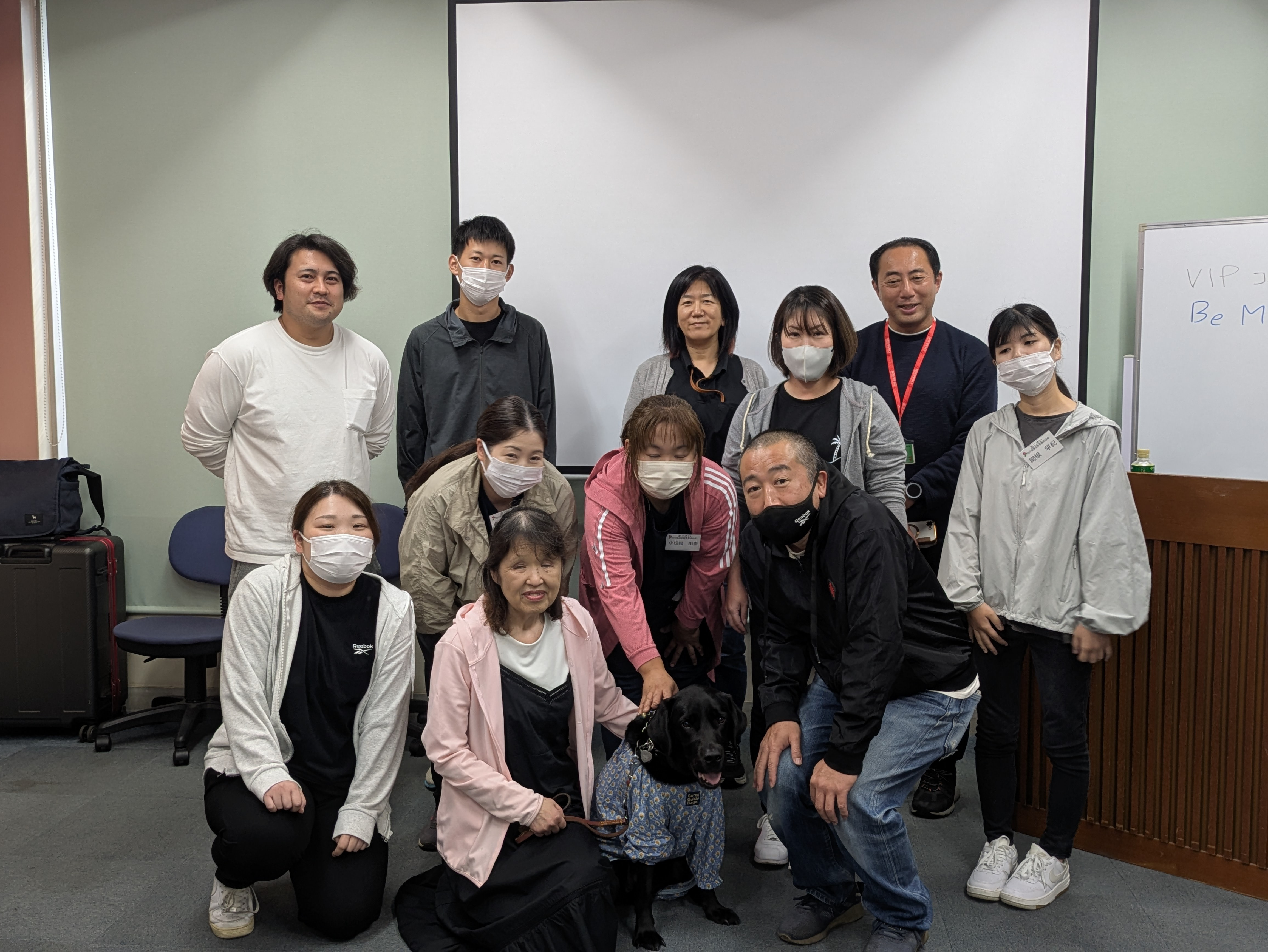 ※前列左から二人目、6月研修は盲導犬交替時期のため、飯島様講話のみ(盲導犬不在)の可能性あり