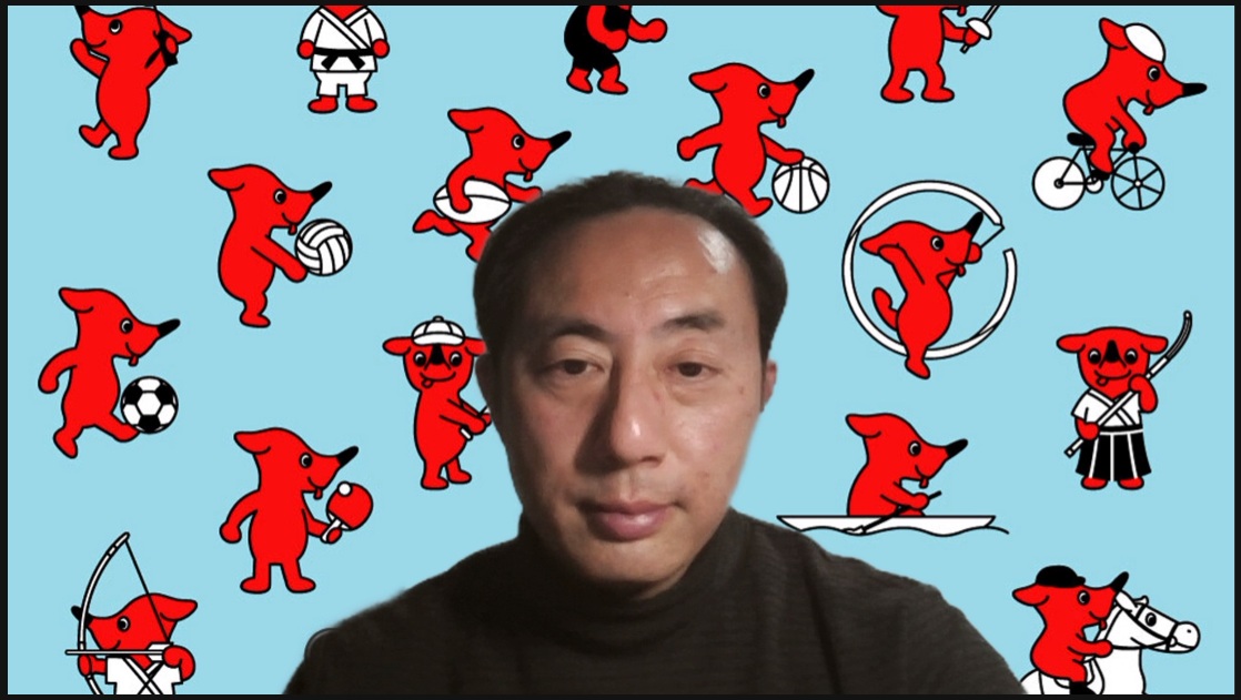 ☝Google Meetを使ってのオンライン講演中の本部スタッフ。背景は千葉県らしくチーバくん!